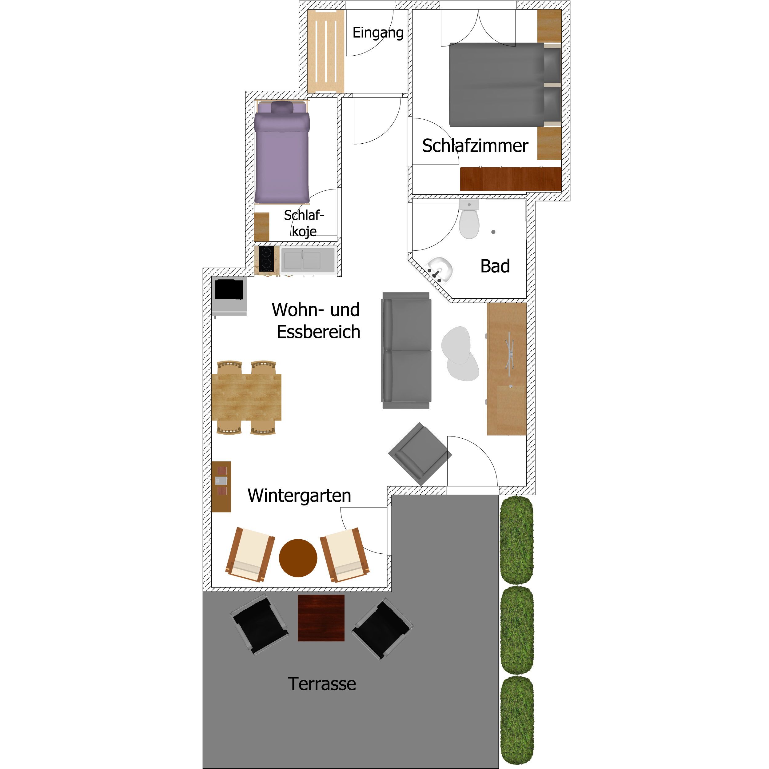 - Ebenerdige 2,5 Raumwohnung für bis zu 3 Personen